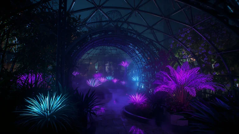 Each wallpaper explores a different facet of cyberpunk design: towering metallic halls illuminated by holographic code, floating highways that stretch into digital voids, botanical domes filled with glowing plants, and abstract AI structures suspended in silent chambers. We intentionally avoided character-based art to deepen the atmospheric focus and give you wallpapers that feel clean, immersive, and versatile across devices. The palette leans heavily into cyan, magenta, electric blue, violet, and occasional orange details—colors traditionally associated with technological intensity and sci-fi energy. Against the dark backgrounds, they radiate with extra precision and glow, reinforcing the cyberpunk identity.