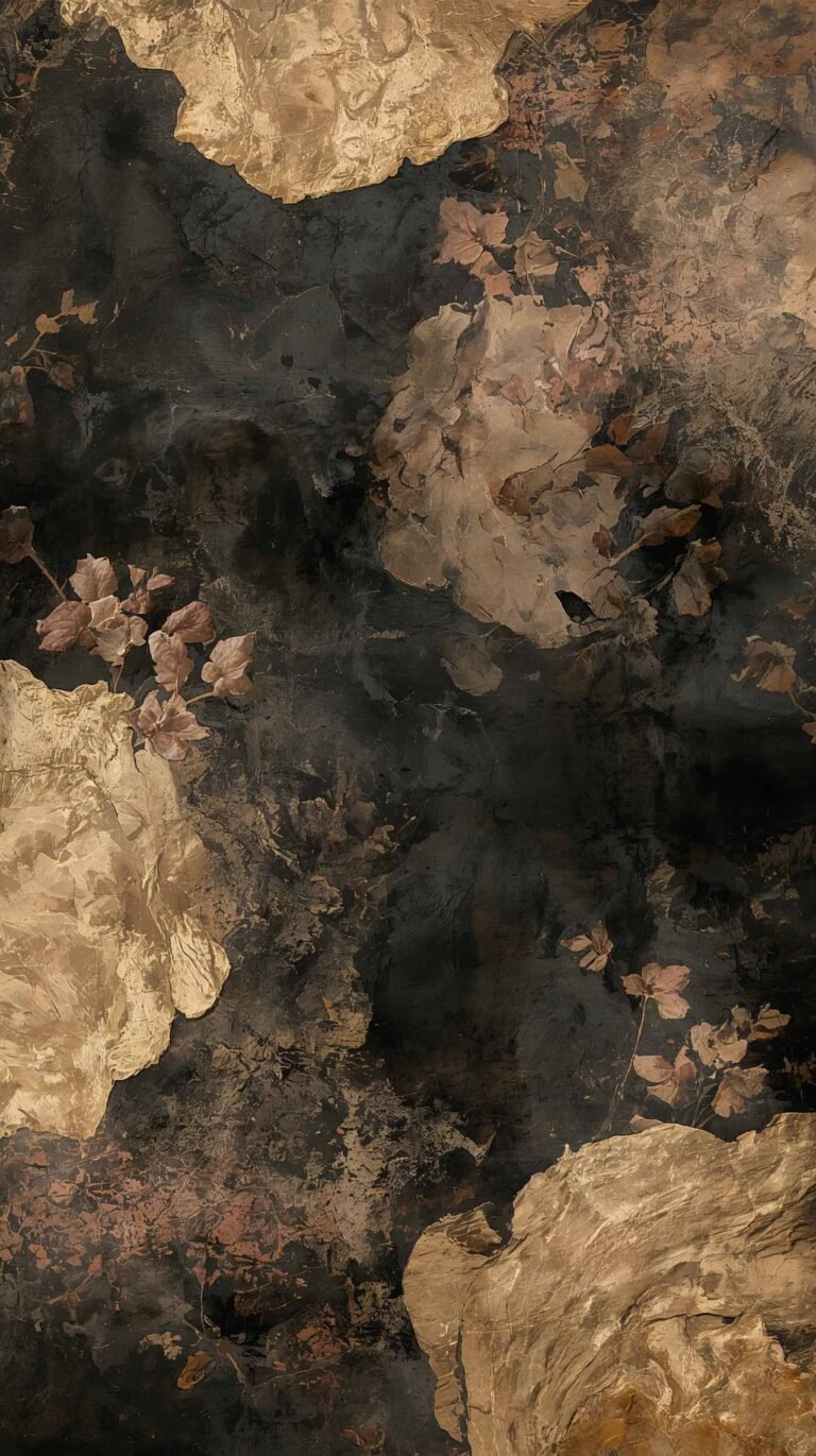 Modern minimalism is no longer about absolute flatness. It’s about controlled complexity — allowing one element, such as texture, to carry the visual interest while everything else remains quiet. In these black gold wallpapers, the painterly texture becomes that single focal point, creating a more organic and human feel that resonates emotionally with viewers.