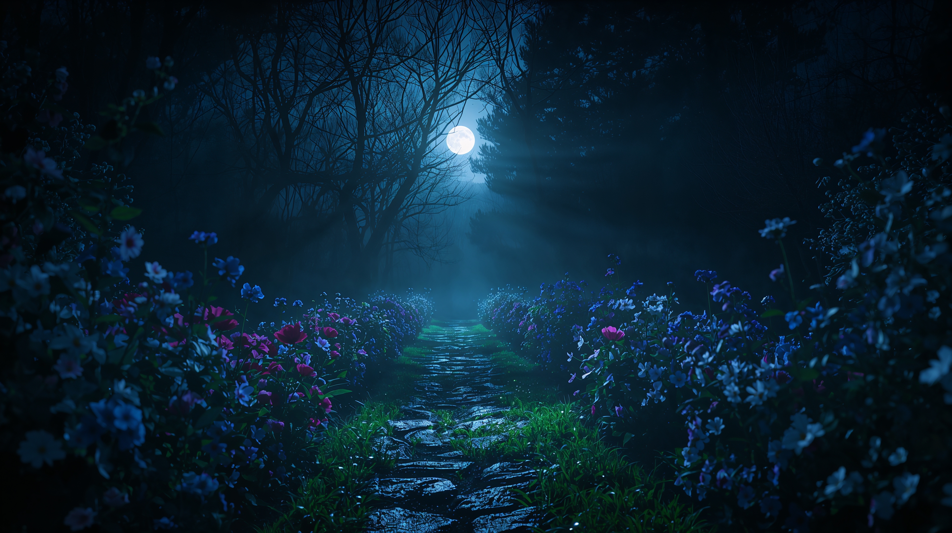 Black Night Garden Moonlight Spring Wallpapers – Dark Floral Aesthetic Backgrounds (Free 4K Download for Phone, iPad & Desktop)