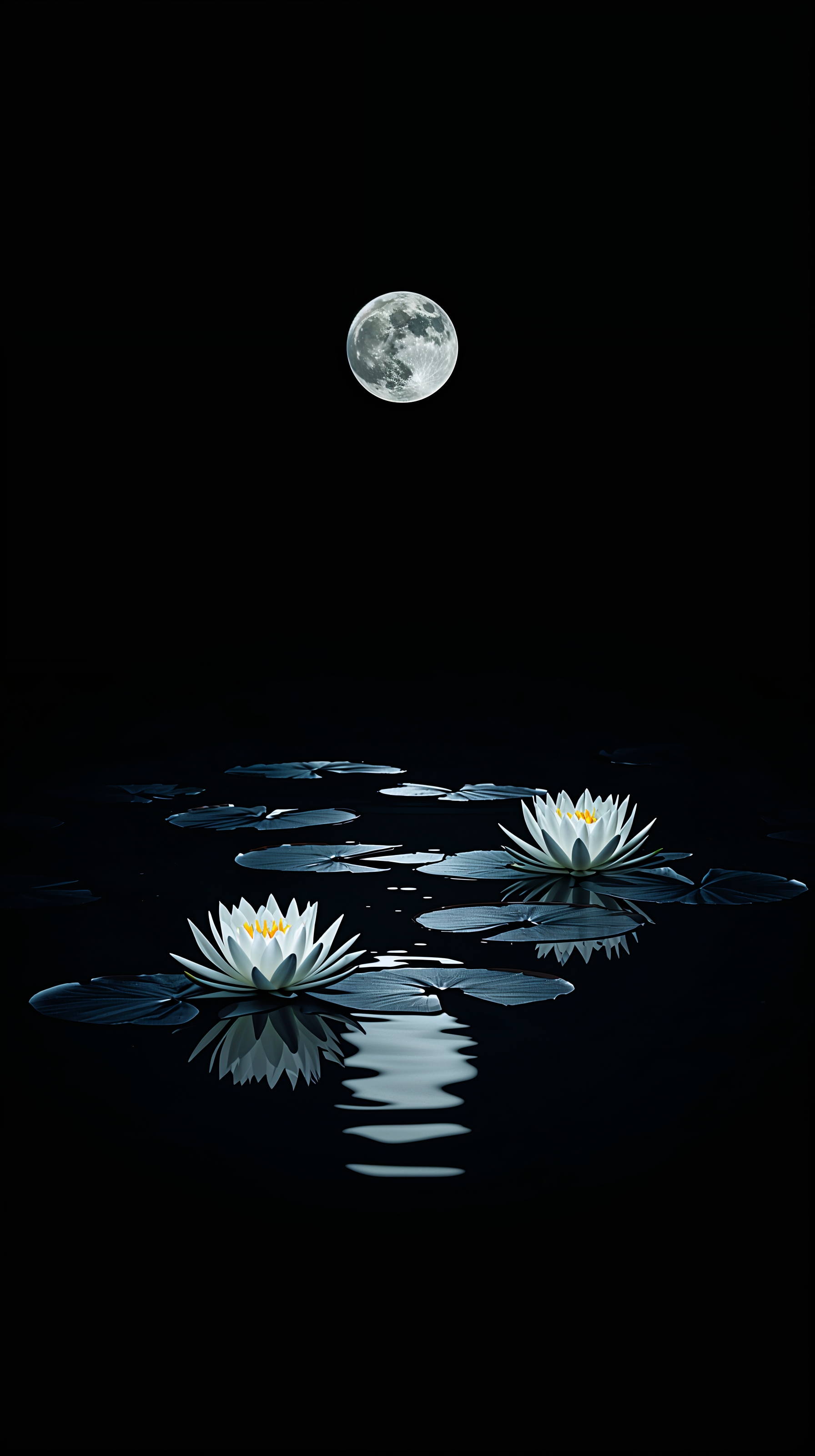 Go for water lilies, moon reflections, or soft glowing flowers. These create a peaceful, almost meditative atmosphere.