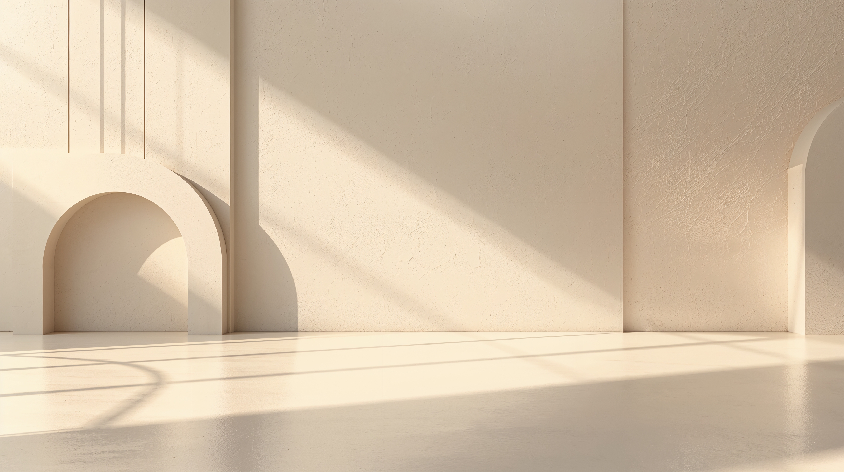 Soft beige gradients create a warm and calm atmosphere, while architectural light and shadow compositions add a structured, modern feel. Frosted glass effects introduce a slightly futuristic look without becoming overwhelming, and minimal marble textures bring elegance without unnecessary detail.