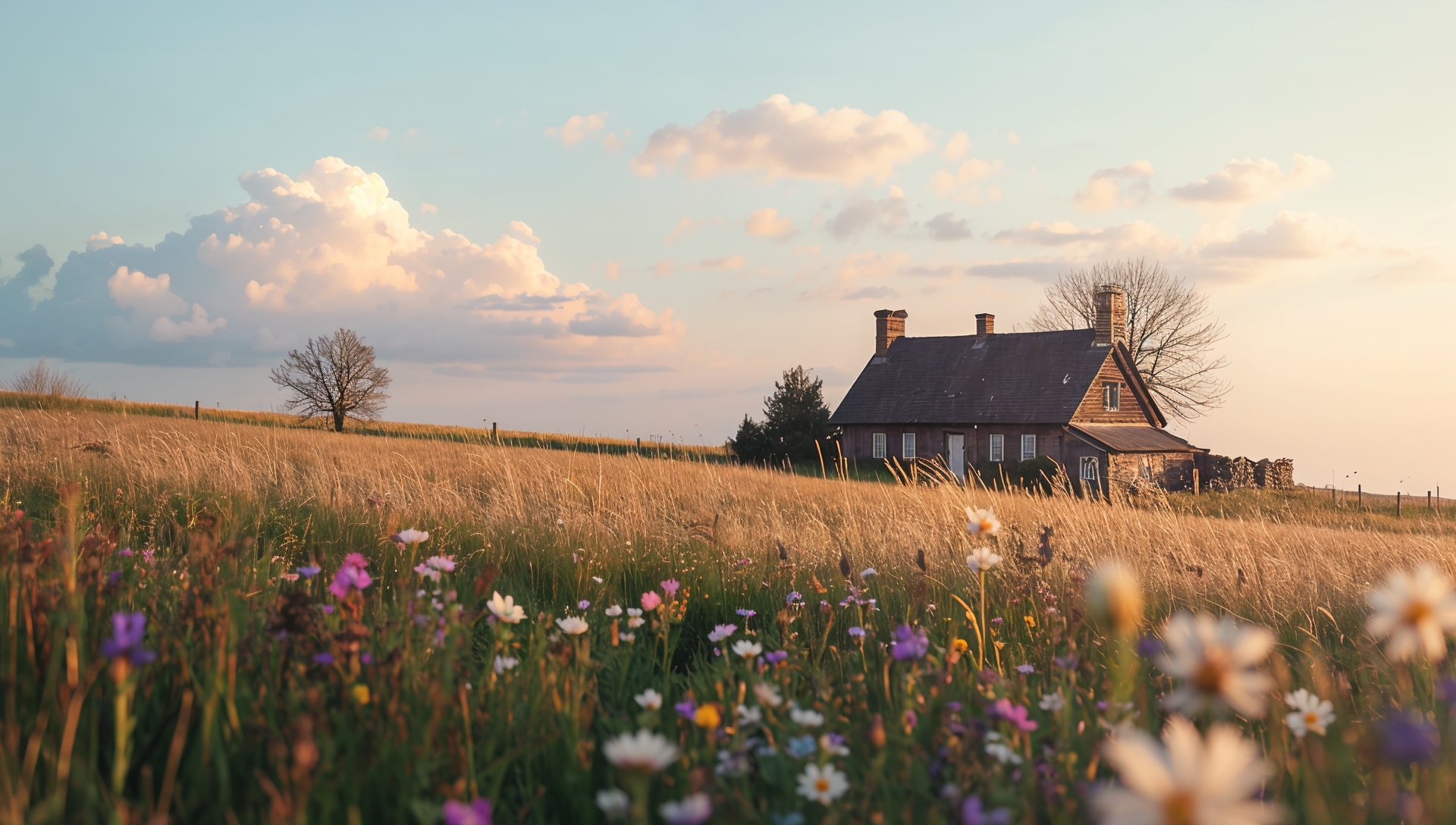 Images with simple cottages and open landscapes work well when you want a clean desktop background that doesn’t distract.