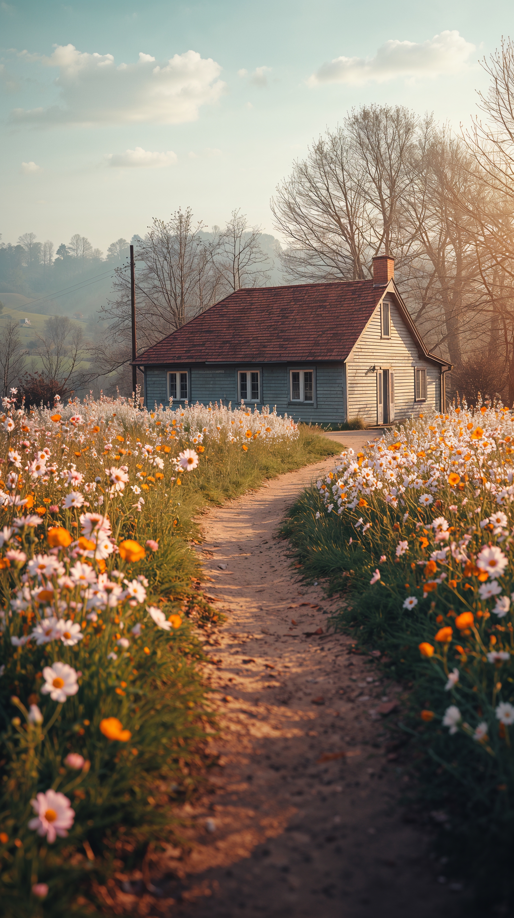 Cozy Spring Countryside Cottage Wallpapers – Peaceful Rustic Nature Backgrounds (Free 4K Download)