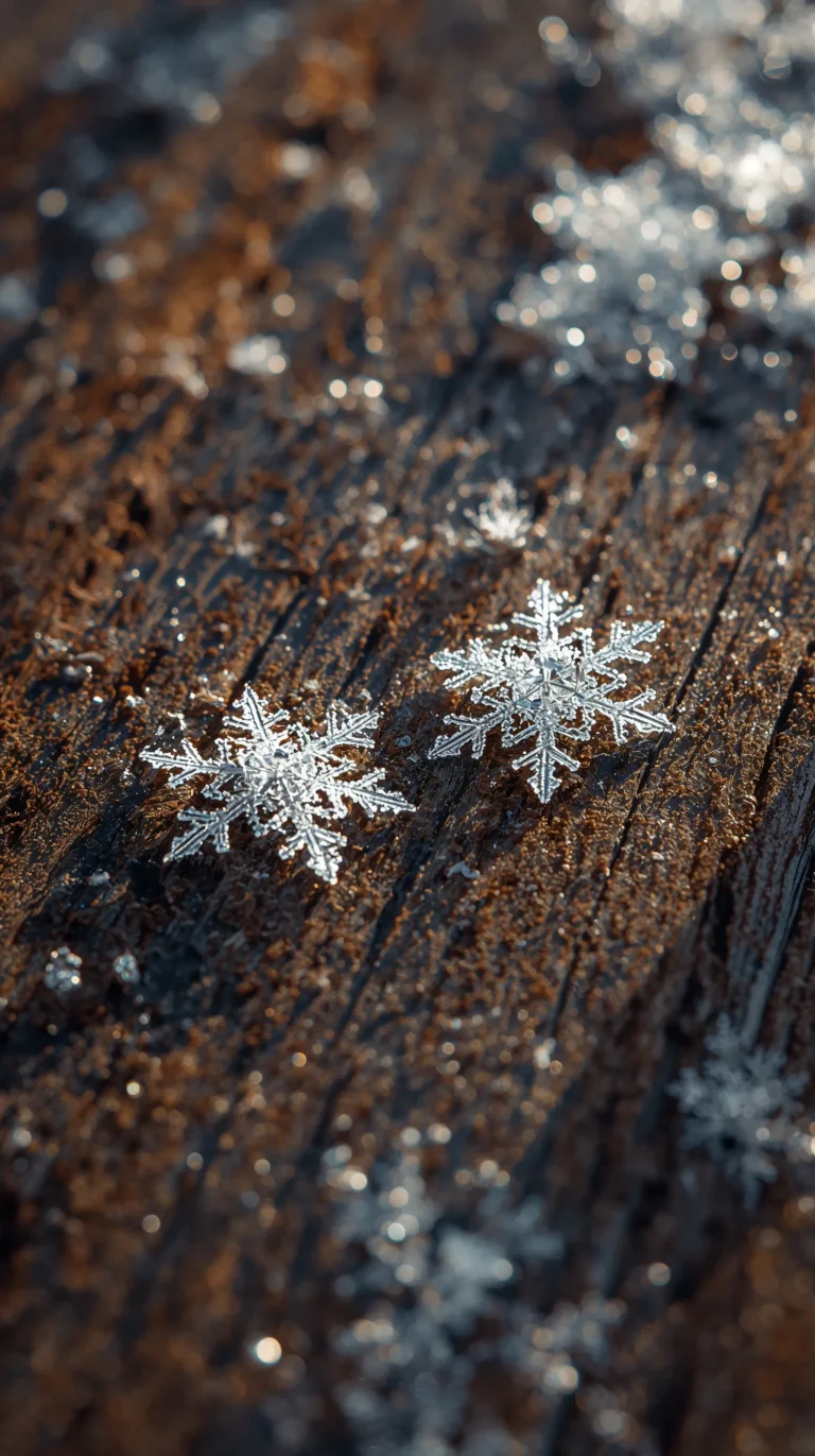Every image in this collection was created using AI-assisted photorealistic generation. We focused on macro photography techniques: shallow depth of field, soft bokeh, natural winter lighting, and high-resolution clarity. We gave extra attention to texture — wool fibers, wooden surfaces, cocoa foam, and blurred backgrounds help create realism. These cute aesthetic wallpapers for iPhone are not patterns repeated infinitely. Each one is built around a single moment and a single subject. AI helped us recreate the microscopic crystalline structure of snowflakes in perfect detail, so you can see sharp edges, tiny branches, and the natural glow created when light hits ice. The result feels like a photograph you could have taken on a winter walk — only more magical.