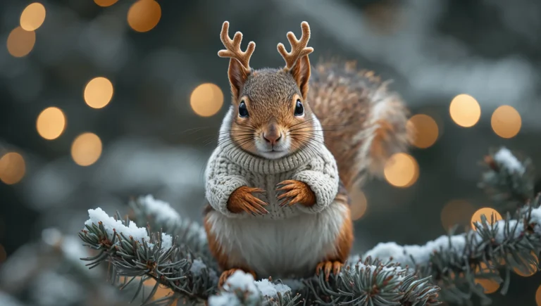 Each image in this post was designed using advanced AI-generation techniques to ensure high-quality results. We used detailed references such as real fur textures, Christmas lights, and winter fabrics to make every character feel soft, expressive, and believable. The squirrels have fluffy tails and delicate whiskers, the kittens show curiosity in their eyes, and the hedgehog’s quills catch the warm glow of the lights nearby. Even the snail looks magical, wrapped in fairy lights and wearing a tiny Santa hat, bringing a unique personality to the collection.