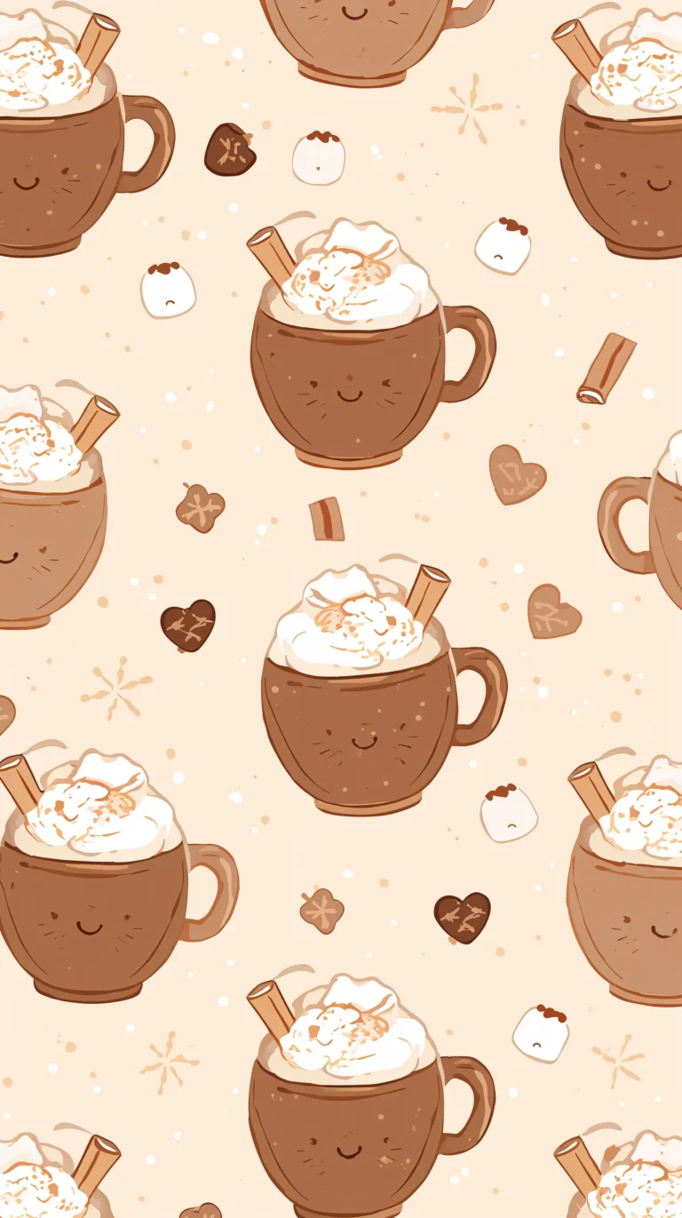 Winter has a special way of slowing everything down. The snow falls softly, mittens hang by the door, and mugs of hot cocoa warm our hands. In this calm rhythm, patterns tell stories. These cute pattern wallpapers capture that feeling — snowflakes, knitted textures, tiny penguins, and warm brown cocoa mugs come together to form a visual blanket of coziness.