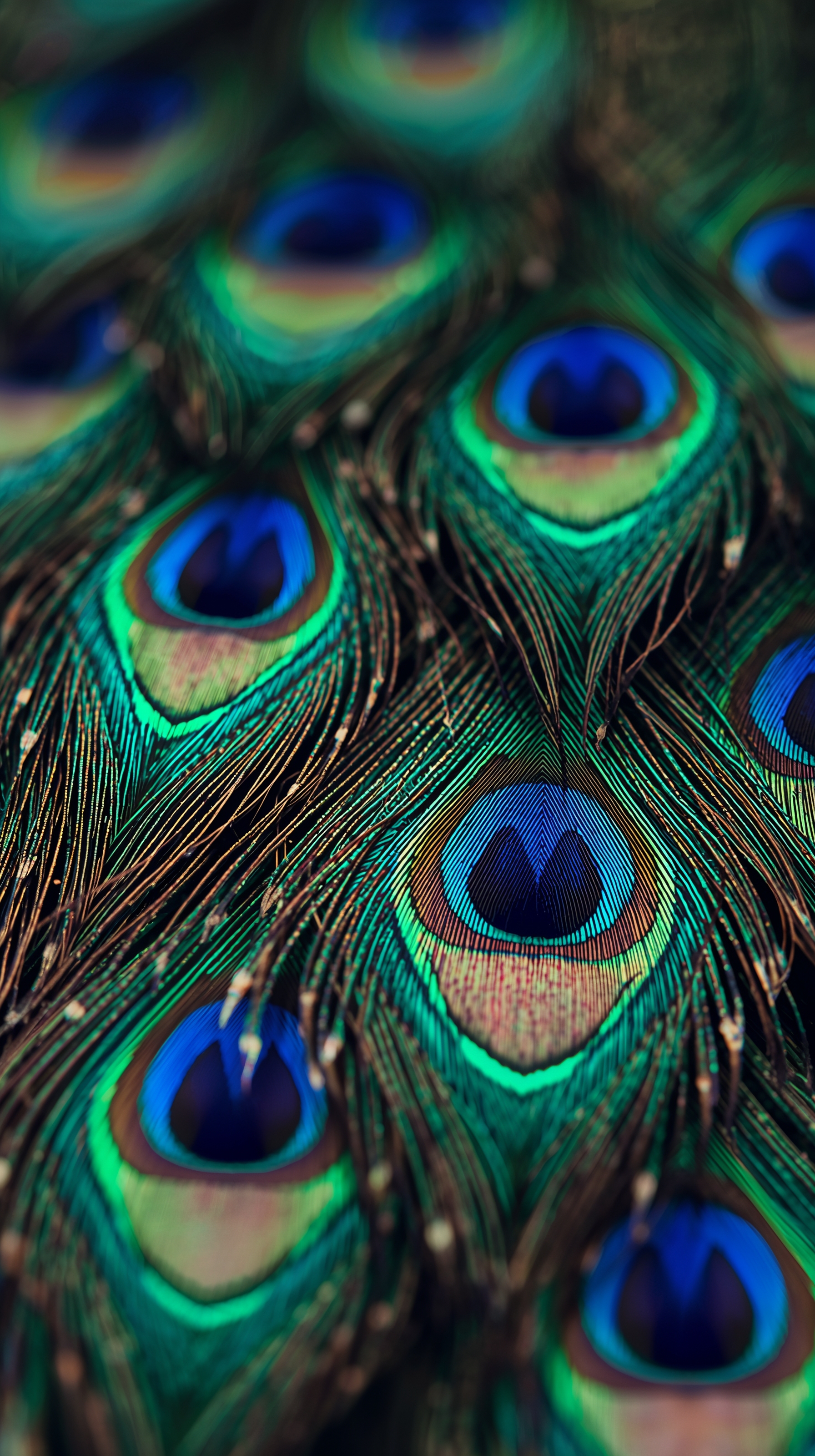 Peacock feather wallpapers are the most recognizable in this collection. The iconic “eye pattern” creates a natural focal point, making your screen feel structured and intentional.