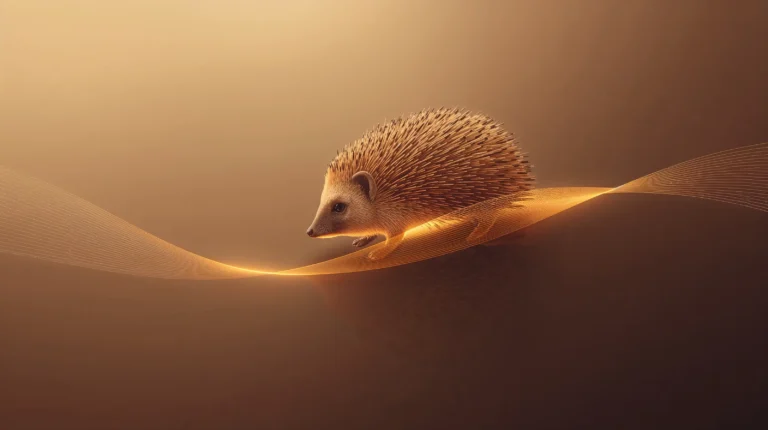 In its refined AI form, however, the same idea transforms into something far more dimensional. The line turns into a glowing ribbon of gold and brown light, lifting the hedgehog as if it’s walking on a wave of energy. Each quill catches the subtle light, creating an interplay of realism and abstraction.