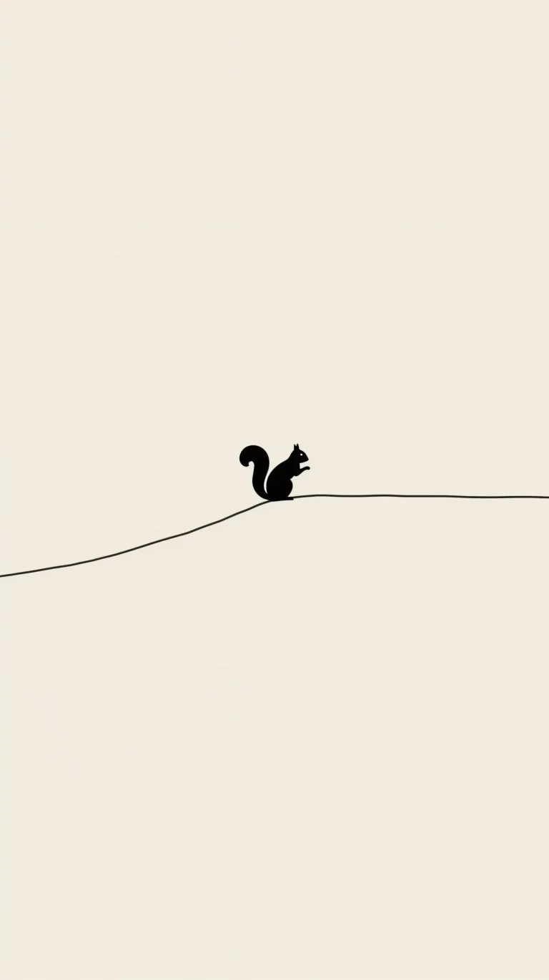 As shown in the images below, the first design is pure minimalism: a thin black line gently curving across a beige background, with a simple squirrel silhouette perched in perfect balance. It feels calm, light, and iconic — a whisper of movement frozen in simplicity.