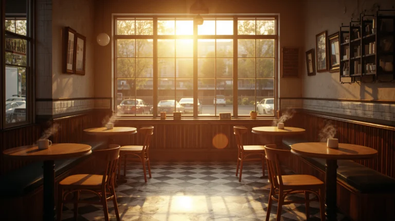 These images blend cinematic lighting with analog textures to create depth and emotion. Some are soft and cozy, like a quiet café corner with warm sunlight; others are bold and moody, like a retro street scene under neon lights. Together, they celebrate the imperfections and beauty of life before the digital age.