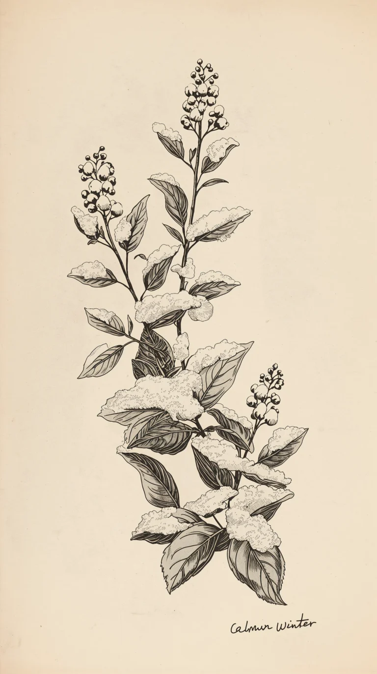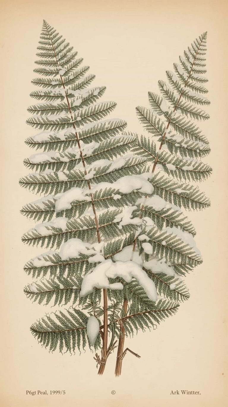 Winter botanicals have a special magic. Unlike spring or summer florals, which are vibrant and lush, winter plants are subtle and resilient. Their beauty comes from simplicity: thin branches, dried blooms, pale leaves, soft textures, and tiny frozen berries. This minimalism aligns wonderfully with the vintage illustration style.