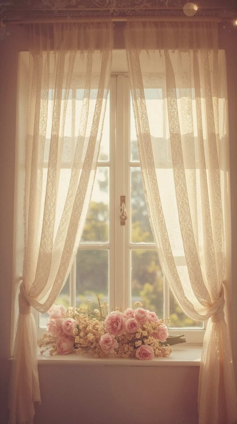 The collection you see here was designed for people who want their phone to feel like a cozy escape — a tiny vintage world filled with pastel light, dreamy textures, and comforting memories. As you look at the wallpapers in this collection, you’ll immediately notice how each one carries a distinctive vintage charm while remaining delicate and modern enough for everyday use. The pastel window scene with lace curtains creates a dreamy, intimate atmosphere, as if you’re standing inside a peaceful cottage during golden hour. The floral frame offers a timeless pastel palette perfect for those who love romantic touches on their phone. The bookshelf introduces warm muted browns and dusty pastels that evoke the feeling of beloved old novels and secret stories.