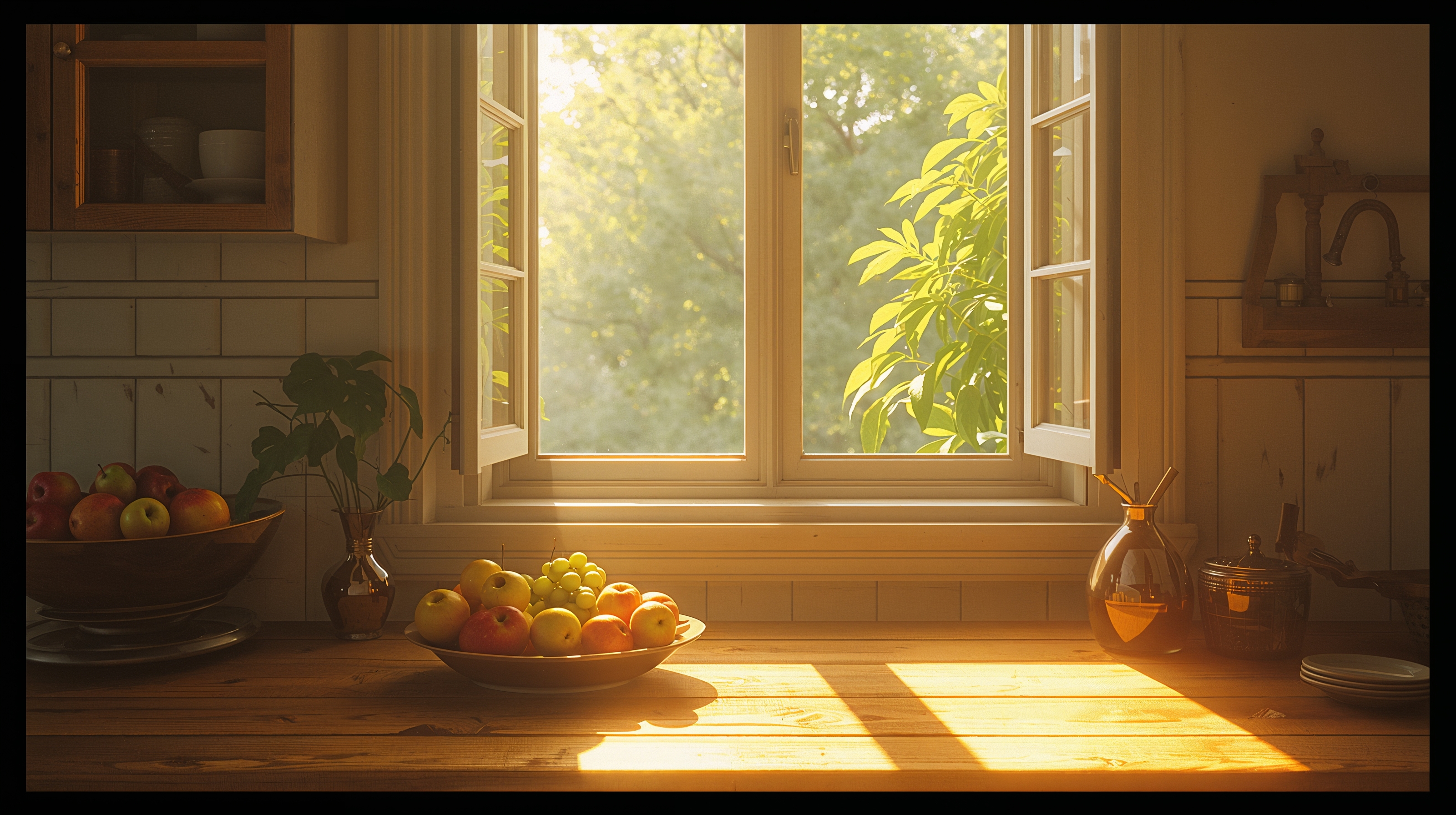 If you want a calm and cozy atmosphere, the indoor scenes are ideal. The sunlit window with flowers or the soft curtain compositions create a gentle, intimate feeling that works especially well for evening use.